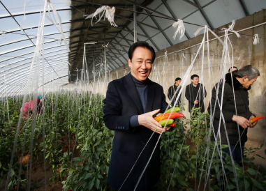 考察现代生态循环农业产业基地。该基地由许家印在2016年捐赠3500万元建成,共有大棚106栋,已帮助2100多名贫困群众实现脱贫。