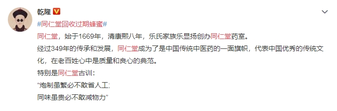 同仁堂被曝回收过期蜂蜜!百年老店也造假了?公司紧急致歉