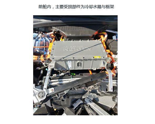 碰撞造成了前舱部分溃缩,而前纵梁、前副车架、乘员舱等均未受损。
