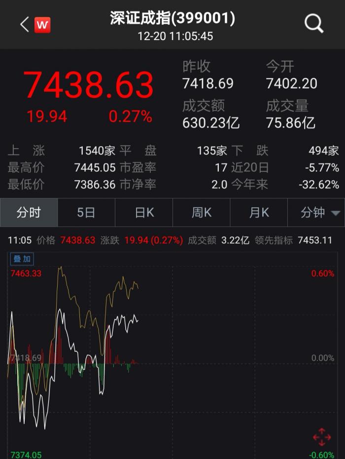 受此影响,12月20日A股开盘,三大指数毫无悬念绿意盎然,沪指低开0.2%、深成指跌0.22%,创业板指跌0.16%。但截至记者发稿,深成指、创业板已经翻红。