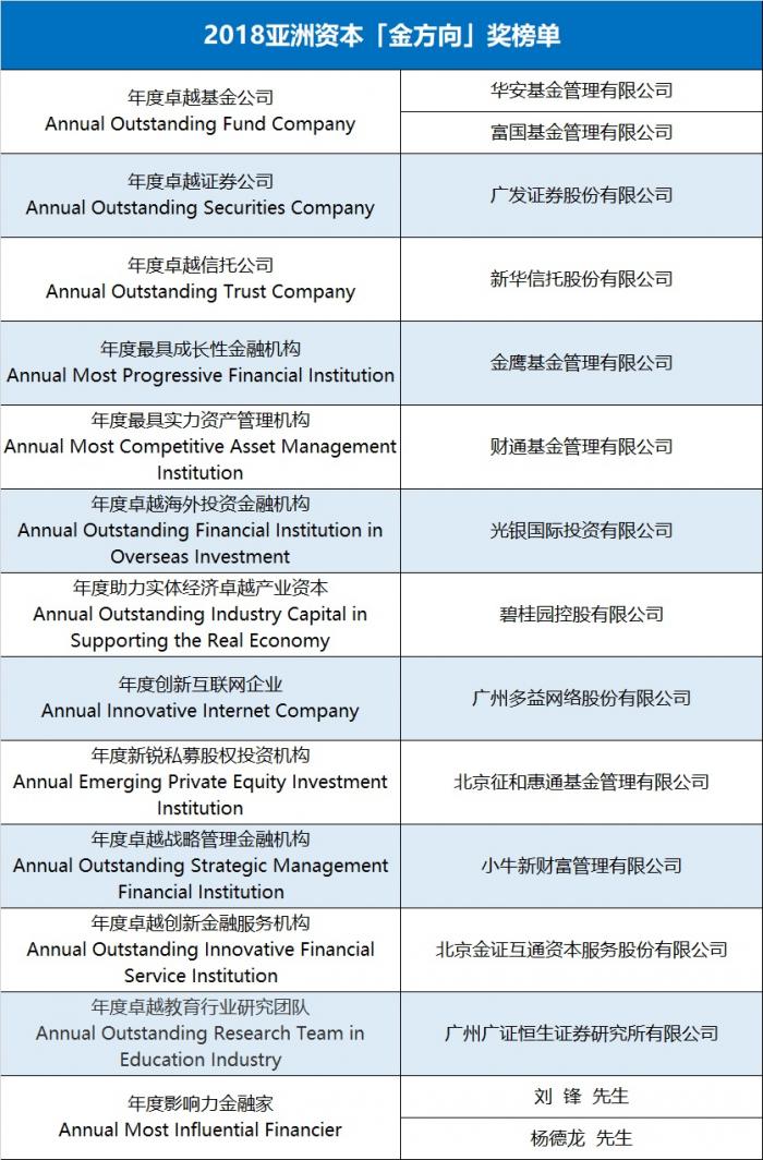 2018亚洲资本「金方向」奖榜单盛大揭晓