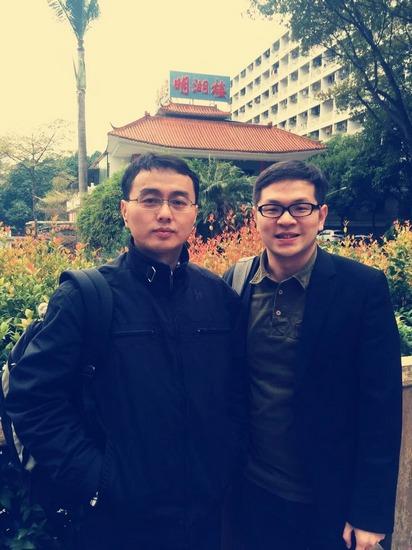 庄礼伟与暨大国际关系学博士后马立明合影。