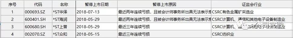 在2018年上半年,包括*ST华泽、*ST海润、*ST上普、*ST众和在内的4家ST类公司被暂停上市,其中既有因为最近三年连续亏损的原因,也有最近两年连续亏损且被会计师事务所出具无法表示意见的原因。