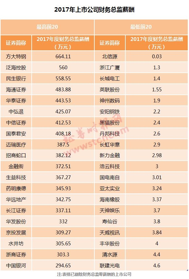 另外,数据表明,有1382家上市公司的财务总监2017年的年薪低于50万元。