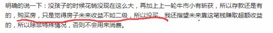 2、没买房:一是因为买了孩子也上不了好学校,而是认为房子未来的收益抵不上股市。