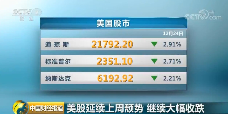 12月24日,因为是圣诞节前的最后一天,美国股市只进行了半天的交易,从早上开盘起三大股指就一路向下。