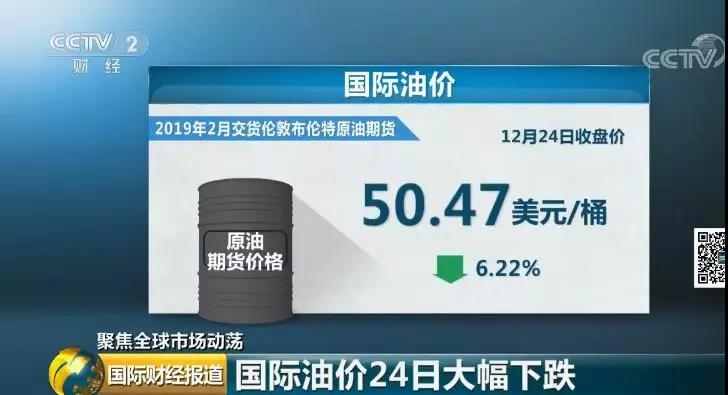 24日,2019年2月交货的伦敦布伦特原油期货价格则下跌了6.22%,收于每桶50.47美元。