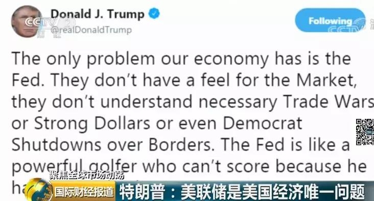 当天一早,特朗普便在社交媒体上表示,“我们的经济唯一的问题是美联储。他们对市场没有感觉,他们不理解必要的贸易战争或强势美元政策,甚至不理解民主党在边境问题上迫使联邦政府关门大吉。美联储就像一个强大的高尔夫球手,不能得分,因为他没有手感,不能推杆进洞。”可以说,特朗普对美联储的不满随着年内4次加息而与日俱增。他更是打破总统不公开评论美联储货币政策的惯例,多次抨击美联储主席鲍威尔以及美联储的货币政策。