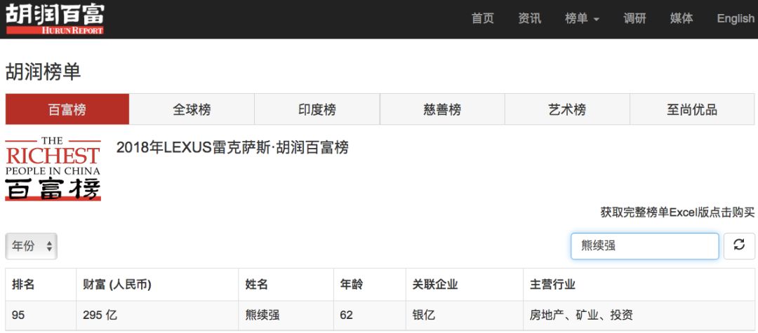 在2018年的《胡润百富榜》上,熊续强的财富已经达到了295亿元。