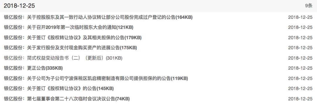 每日经济新闻(微信号:nbdnews)记者梳理发现,2018年以来,银亿股份发起过多次股权转让,转让部分旗下公司股权。值得注意的是,12月24日晚间,银亿股份连夜公布了多条公告,转让旗下房地产资产部分股权。