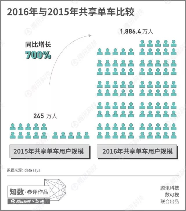 与此同时,共享单车用户规模持续增长,2016年共享单车的用户规模达到了1886万人,同比增长达到惊人的700%。