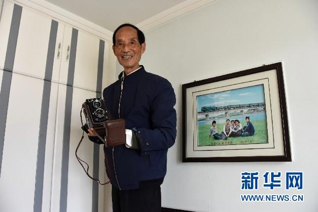 李汉朝和他的海鸥相机。(新华社记者 段敏夫 摄)