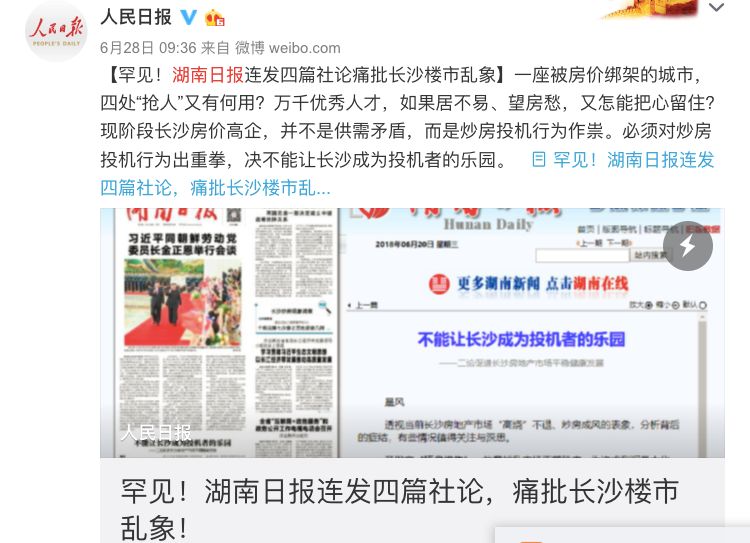 今年6月,《湖南日报》连续发文,痛批长沙楼市调控不力。随后,长沙相继出台了一系列“打补丁”政策。