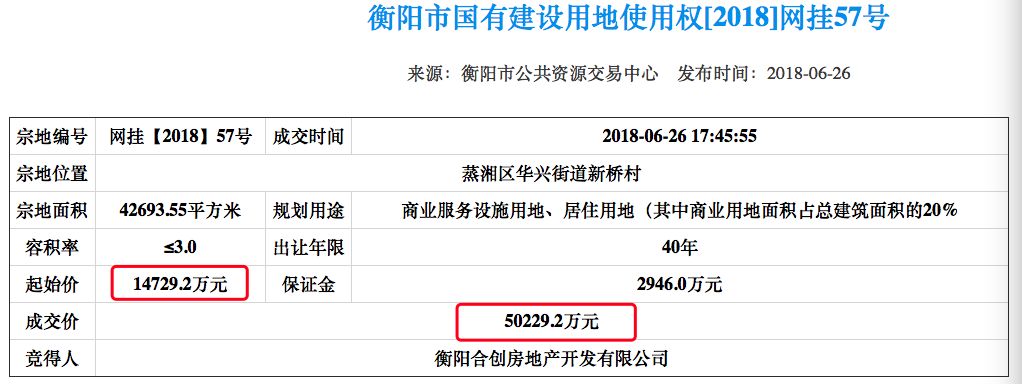 中原地产研究中心发布的“2017全国卖地收入最高50城”榜单中,也出现了衡阳的名字。2017年,衡阳的土地溢价率同比增长了2797.75%。