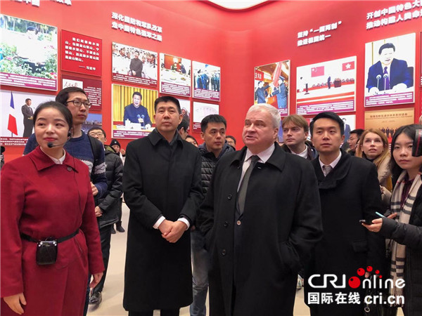 12月27日,俄罗斯驻华大使杰尼索夫在中国外交部欧亚司司长孙霖江的陪同下,率俄驻华使馆代表团参观了《伟大的变革——庆祝改革开放40周年大型展览》。拍摄:刘岩