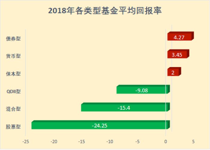 金牛理财网数据显示,截至12月25日,主动股票型基金的年内平均回报是-24.25%,混合型基金的年内平均回报是-15.4%。唯一让人感到欣慰的是债券型基金,托债市走牛的福,年内平均回报是4.27%。
