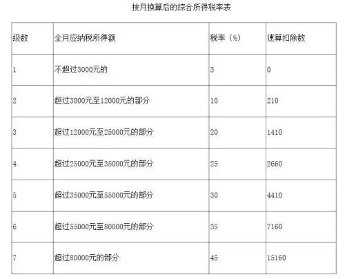 按月换算后的综合所得税率表