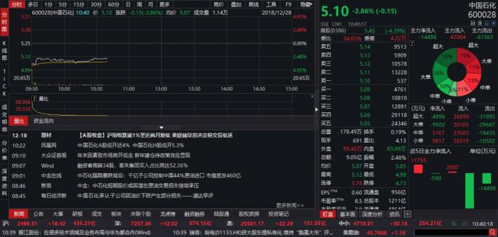 12月28日,中国石化(600028.SH)早间股价再度低开,至10点40分下跌幅度2.86%,暂报5.10元/股。此前一个交易日,中国石化跌6.75%。