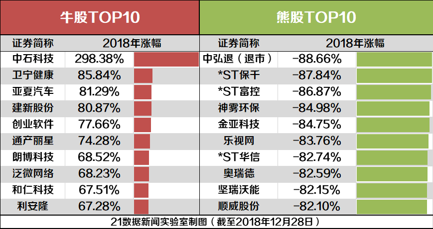 图解2018年A股:沪指一年跌千点,92%个股下跌