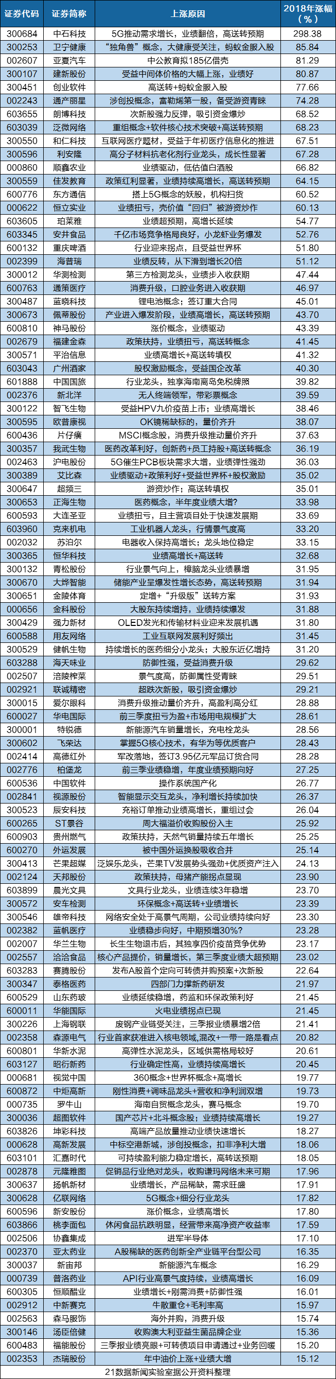 21数据新闻实验室对2018年最牛的100股进行透视发现: