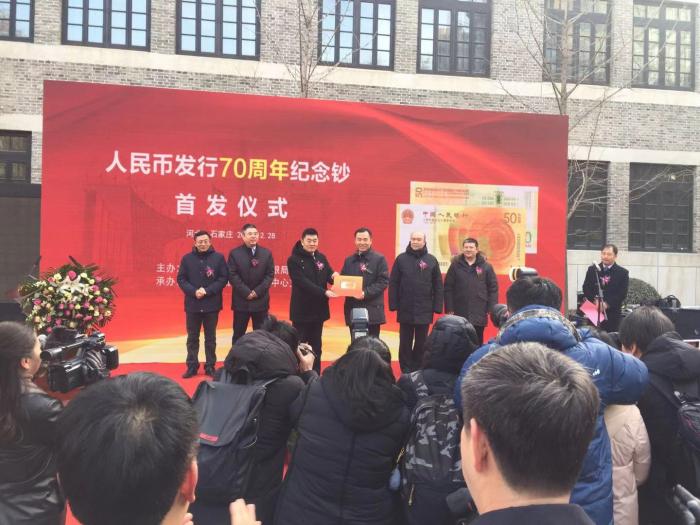 为纪念人民银行成立暨人民币发行70周年,12月28日,人民币发行70周年纪念钞首发仪式在石家庄举行。