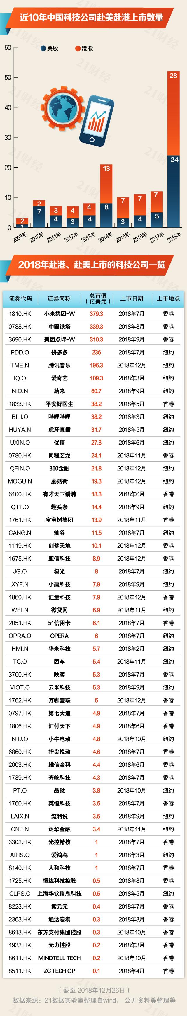 ①风投资本推动下,截至12月26日,2018年已有52家互联网科技公司在香港或美国上市,是2014年上市潮的两倍多,创下互联网科技公司赴境外上市的新纪录;