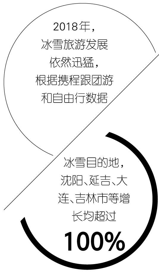 2018年,冰雪旅游发展依然迅猛,根据携程跟团游和自由行数据,主要冰雪目的地,沈阳、延吉、大连、吉林市等增长均超过100%。