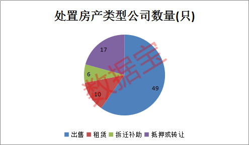 按处置类型划分,49家公司或其子、孙公司通过直接出售的方式来获取非经营性损益,占比超六成;其次是抵押或转让的方式,共有17家;5家公司因拆迁补助而获得一定收益。