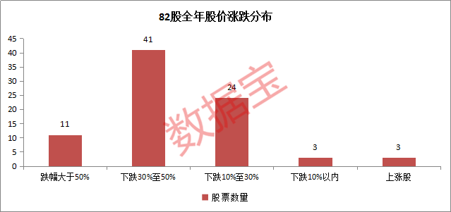 2018年,沪指累计下跌24.59%,创十年来最大跌幅。上述82股平均下跌34.19%,超八成跑输大盘。仅3股全年股价获得正收益,分别是温氏股份、嘉凯城及中关村。顺威股份、金利华电、三变科技、顺宇电子等11股遭腰斩。可见,处置房产公司股价整体表现较差。 上述82股全年市值缩水近2246亿元,福耀玻璃、国元证券、中泰化学等6股全年市值缩水超百亿。