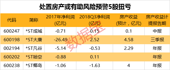 5只风险预警股年内通过出售、拍卖转让房产等方式获得了一定收益,而这笔收益或将成为它们扭亏的关键。