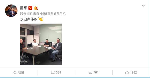 两条微博联系起来,明天上午小米要宣布的事情一定与红米手机有关,或许就是卢伟冰的加盟消息。