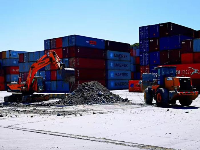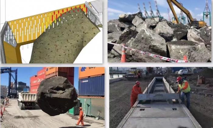 在圣安东尼奥码头港池开挖过程中,他们遇到了建于1911年、深埋水下的防波堤,工程土方量30万吨,最大块石达20吨。新建泊位施工区处于原港区旧抛石防波堤范围,因年代久远资料缺损,加之历经多次地震破坏导致分布不规则与嵌合紧密,对港池开挖和沉桩造成很大困难。