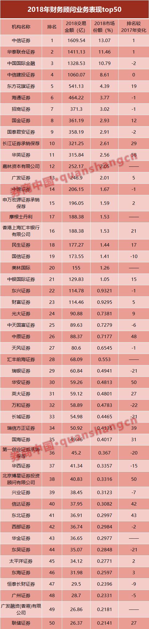 排位大洗牌:24家财务顾问排名提升,19家下降