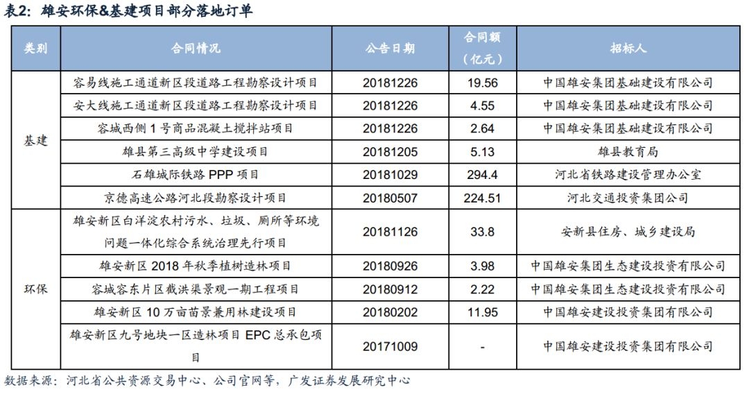 根据中国债券网,截至2018年12月19日,雄安新区300亿地方债务资金募集完毕,其中150亿专项债券资金将用于雄安新区容冬片区征拆建设及周边配套建设,150亿一般债券资金将主要用于新区本级的启动区建设、“千年秀林项目”与防洪工程,因此募集资金将集中投放于基建与环保领域,预计会率先受益。