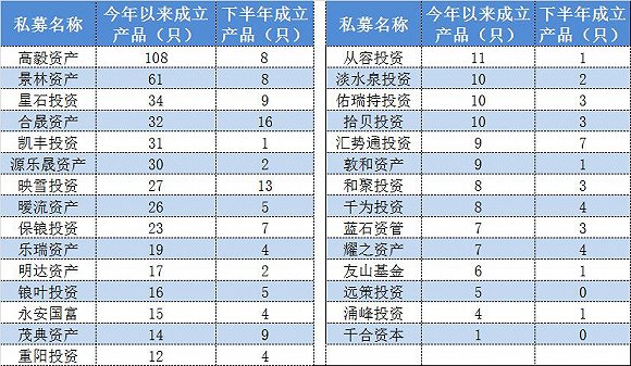 与此同时,百亿私募们却依然频发新产品,高毅资产全年一年共108只新产品,景林资产、星石投资、合晟资产、凯丰投资、源乐晟资产等百亿私募年内的新产品发行数量也均不少于30只。
