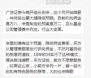 某基金公司相关人士A:“目前没有听说过这个传闻,不过佣金下调是大势所趋。倘若传闻是真,这对基金公司来说是大利空,收入下滑,部分基金经理没法混日子了,同时券商研究所分仓收入也会大幅下滑。这种制度保护基民的利益,挺好的,净化了行业环境。”