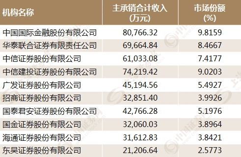 IPO收入排名前十的券商
