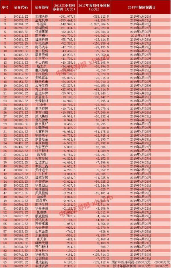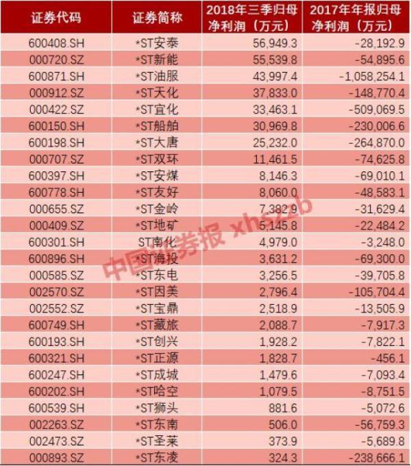据中证君梳理,2017年公司年报出现亏损,且2018年前三季度继续亏损的上市公司共有64家,其中来自主板和中小板的有50家,他们2018年全年亏损的概率较高,可能被实施退市风险警示。另外易成新能、中捷资源两家公司虽然三季报扭亏,但年报预告续亏,或也将被实施退市风险警示。