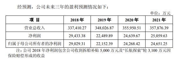 在去年年底的重新上市公告中,长航油运进一步预计,2018年全年净利润能够达到2.94亿元,2019年、2020年和2021年的预测净利润分别为2.25亿元、2.46亿元和2.51亿元。