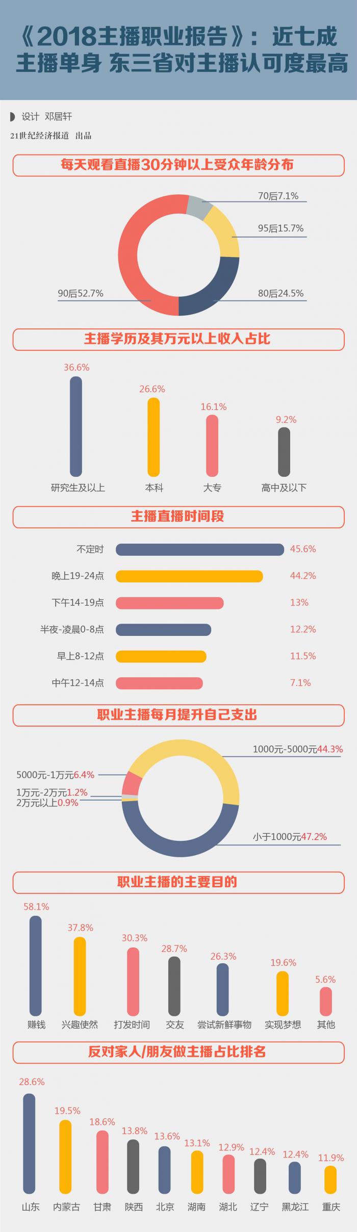 《2018主播职业报告》:近七成主播单身 东三省对主播认可度最高