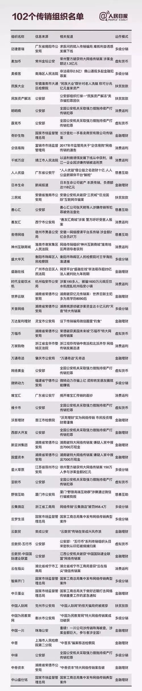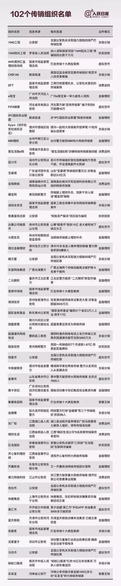 下附人民日报最新统计的102个传销组织名单,以备警示: