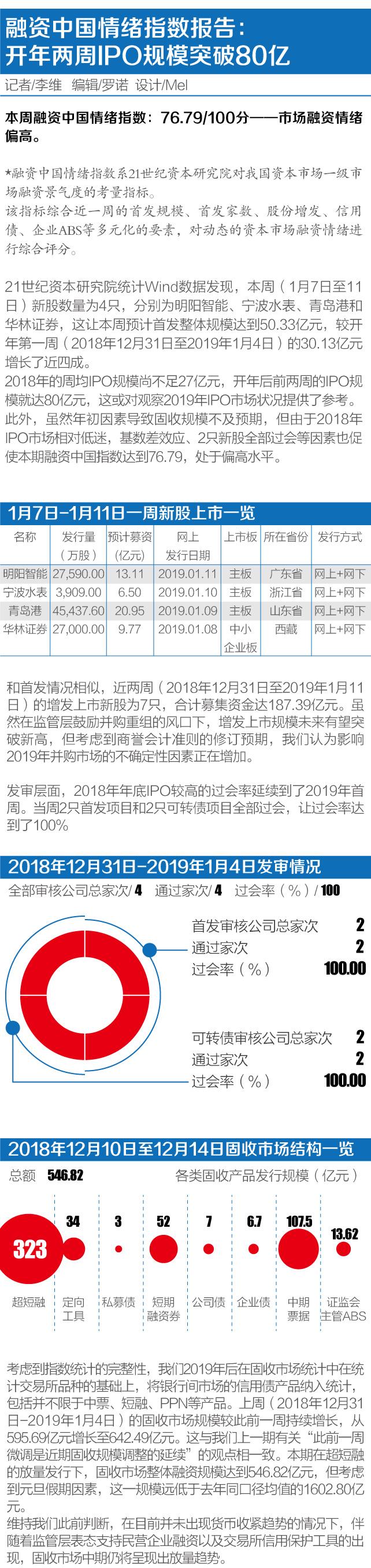1月8日,两家企业首发上会,最终均获得通过。新年至今,四家企业IPO均成功过会,过会率暂时高达100%。
