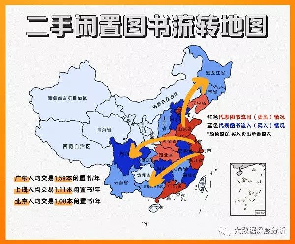 如今,闲鱼正在描绘一幅活跃的“知识流转地图”。数据显示,大量图书正在从沿海省市向中西部省市流转。其中,四川省、重庆市、湖北省、湖南省、河北省已成为2018年闲鱼上TOP5图书流入省市,其中成都、武汉、长沙等城市表现突出。