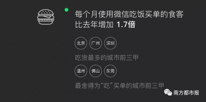 每个月使用微信吃饭买单的食客最多的三个城市是: