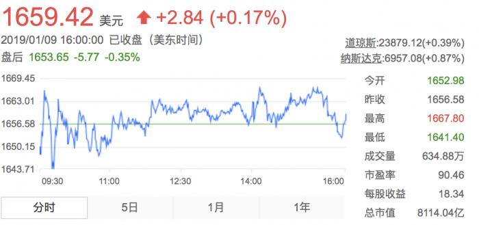 受此消息影响,亚马逊股价在盘初上涨之后,立即下跌,跌幅约为0.7%,股价跌至1641元,随后小幅回升。