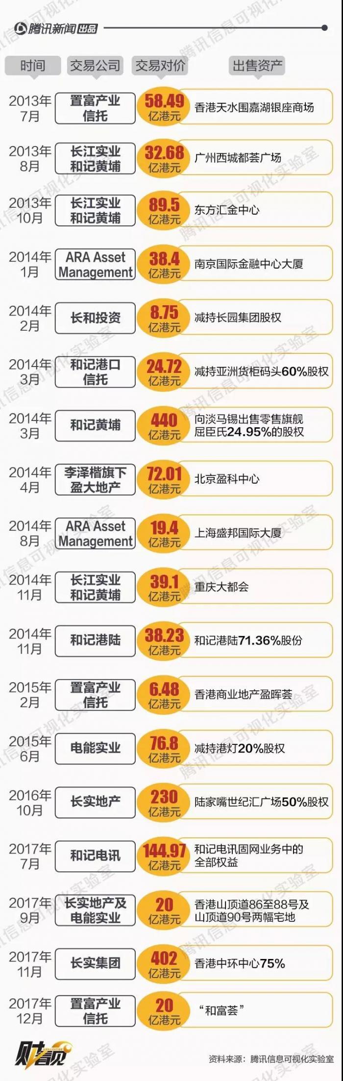 据不完全统计,从2013年开始,李嘉诚家族卖掉的大陆、香港资产约1761.53亿港元。