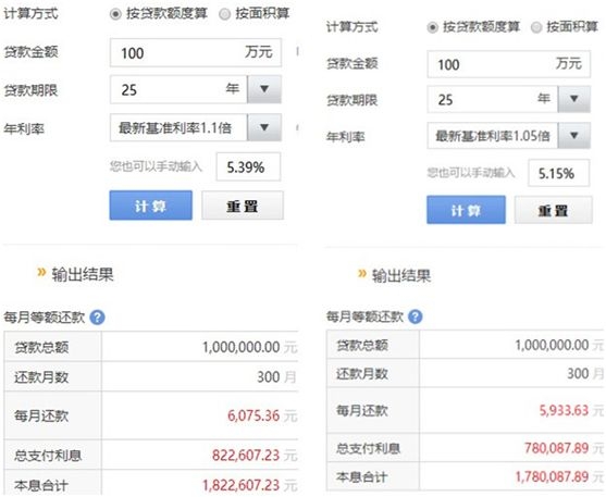 基金君用计算器算了一下,原来上浮10%情况下,需要还款月供是6075元左右,需要支付的利息是82.26万元;但是现在上浮5%的情况下,需要还款的月供下降到5934元左右,需要支付的利息是78.01万元,所以比起之前节省了4.25万左右。如果在大城市买房,省下来的估计会更多。