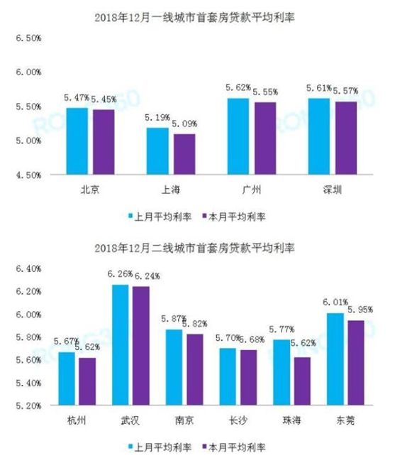 此次房贷利率下降并非个例。实际上,二套房贷款利率的回落比首套利率来的更早,融360数据显示,2018年12月全国二套房贷款平均利率为6.04%,对比11月回落两个基点,且已是连续两月出现回落,环比下降0.33%。