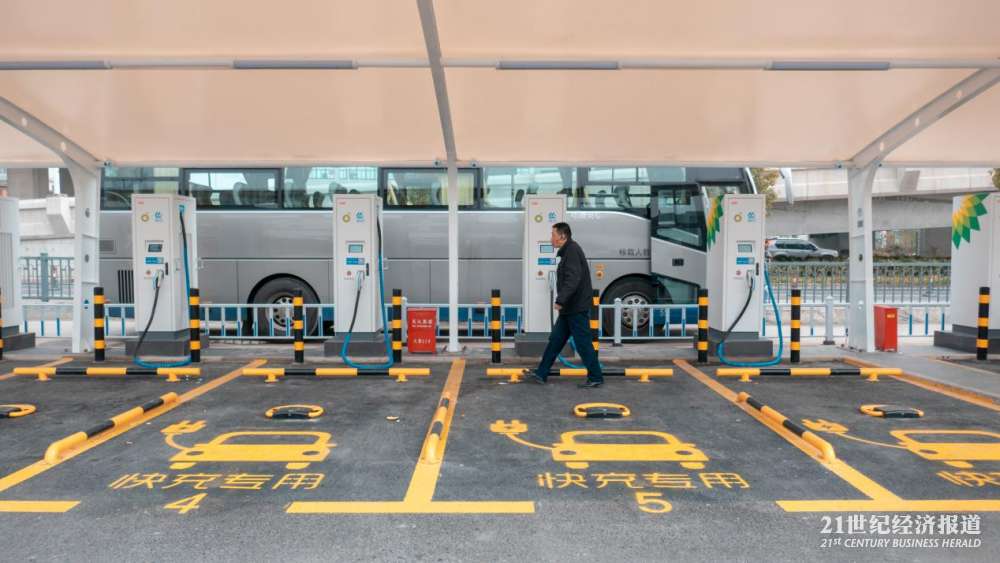 超级充电站自开业以来,据停车场管理员介绍,平时每到晚上,充电站都有司机开着电动车排队前来充电。