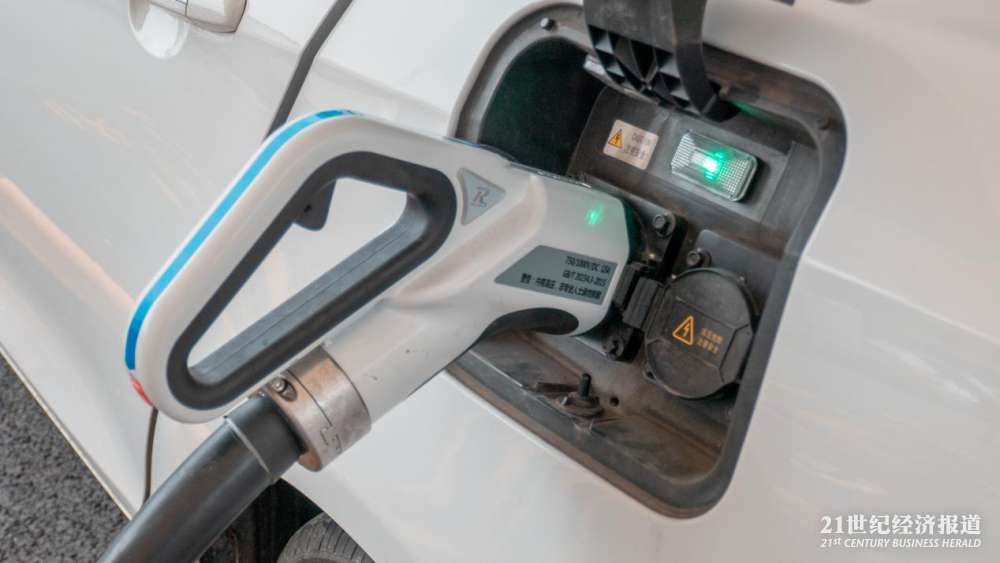 正充电的纯电动车。